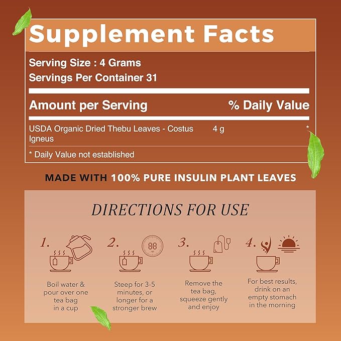 True Vine Insulin Plant Tea (USDA Organic) — Herbal Organic Tea Bags for Blood Sugar Support, Digestive Wellness & Metabolic Balance — 100% Natural, Caffeine-Free, No Additives – 31 Sachets (4g Each)
